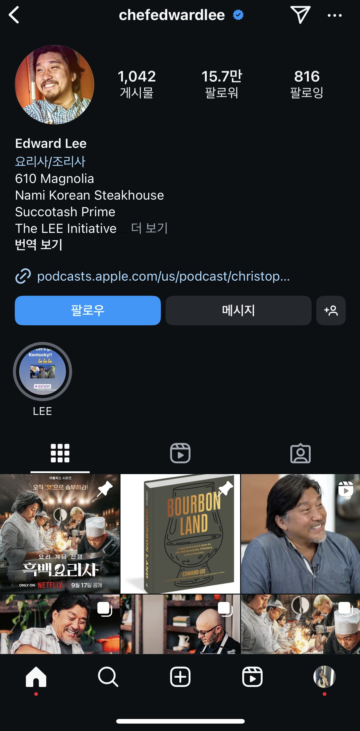에드워드 리는 흑백요리사에 출연 중인 유명 셰프이며, 그의 식당은 미국 루이빌에 위치한 610 Magnolia입니다. 이 식당은 현대적인 미국 요리를 선보이며, 신선한 재료와 창의적인 요리법으로 많은 사랑을 받고 있습니다.
