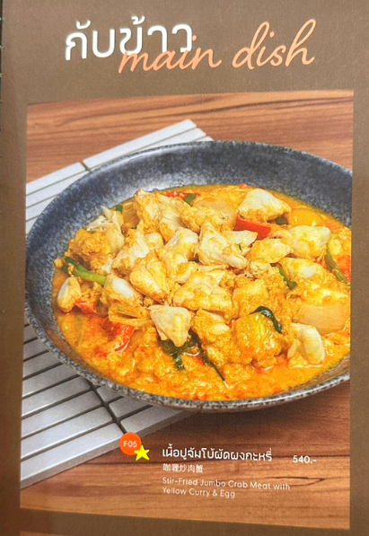 푸팟퐁커리는 신선한 게와 부드러운 카레 소스가 어우러진 태국 요리로, 그 맛과 향이 일품입니다. 달콤하고 부드러운 카레 소스가 게의 풍미를 한층 더 돋보이게 하며, 부드러운 식감과 깊은 맛이 환상적인 조화를 이룹니다.