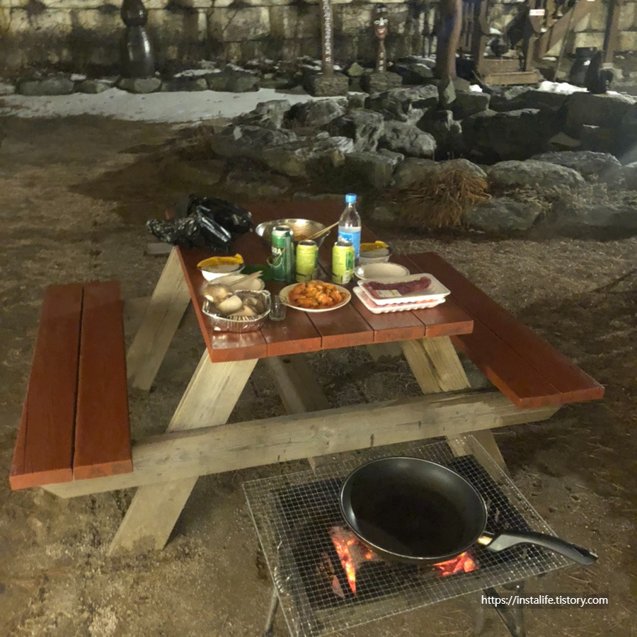 한옥 펜션에서 바비큐를 먹으니 시골에 온 느낌처럼 기분이 좋았습니다.