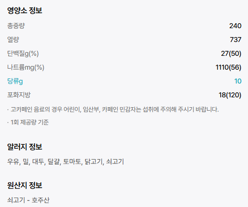 칼로리는 737kcal네요. 생각보다 높네요^^!