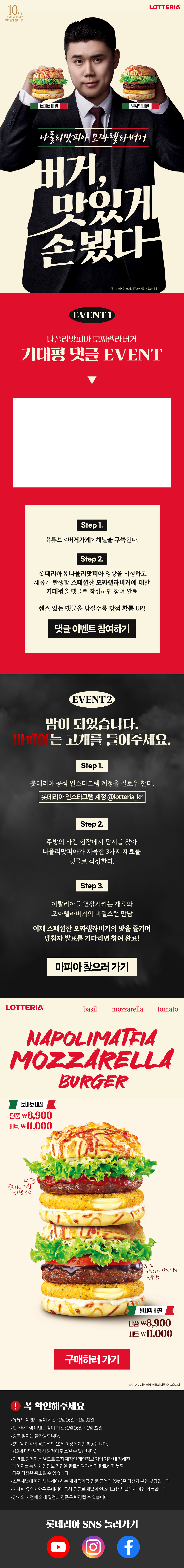 롯데리아 - 나폴리맛피아 모짜렐라 버거 출시소식/ 출처 - LOTTE EATZ 홈페이지