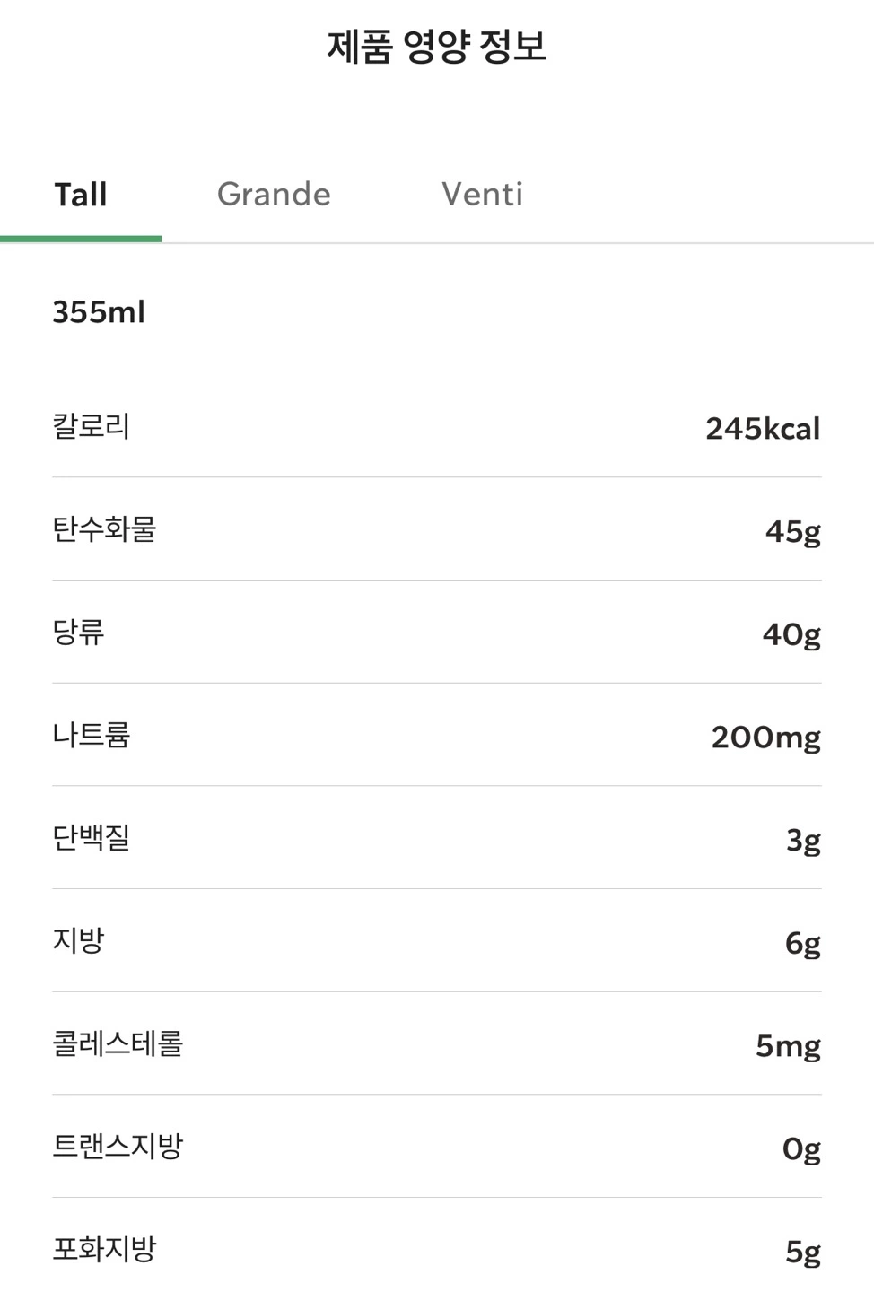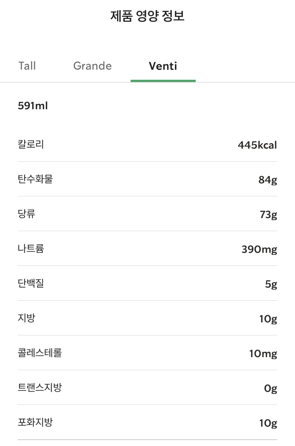 프라푸치노답게 당이 상당히 높긴 하네요~