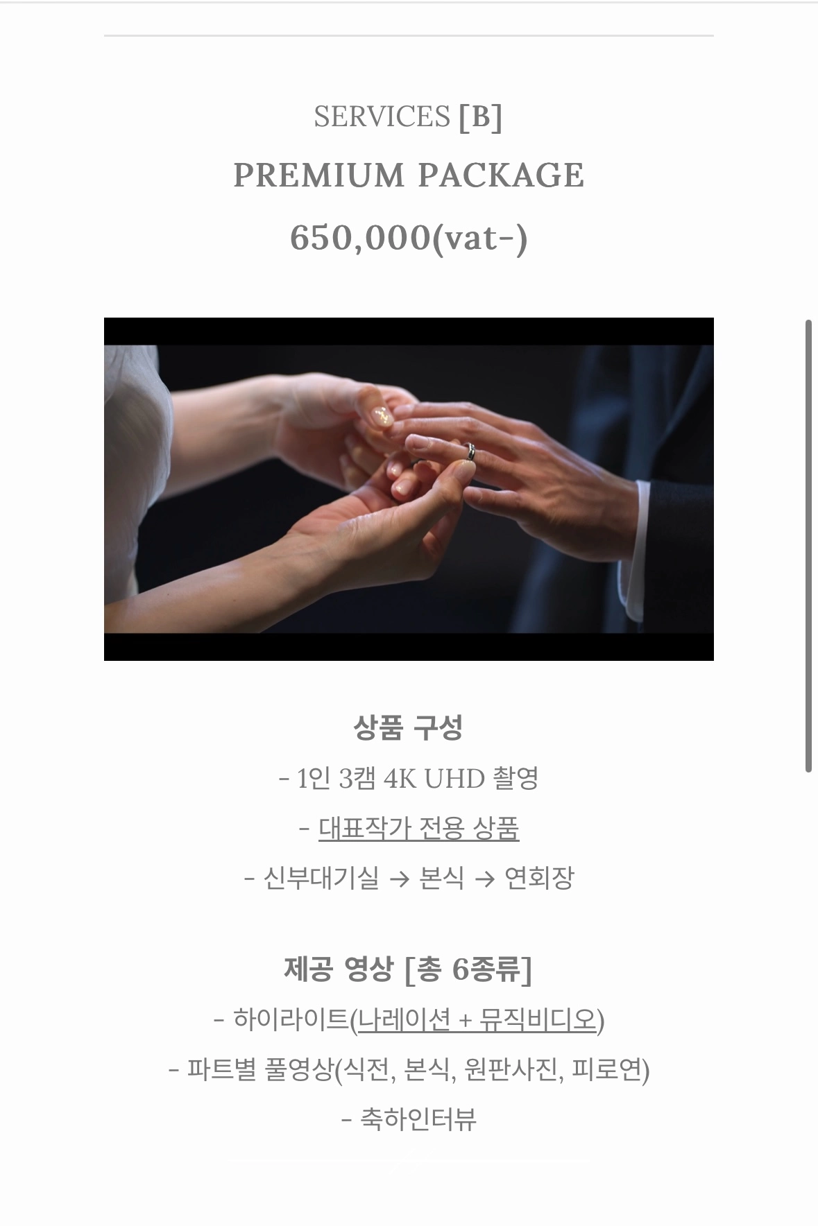 특히 두 상품 모두 혼주 인터뷰와 하객 인터뷰가 포함되어 있어서, 나중에 다시 보면 더 감동적일 것 같아요. 부모님이나 가까운 지인들의 축하 인사를 영상으로 남겨두는 건 생각보다 더 의미 있더라고요. (이게 저한테는 DVD를 계약하게 된 메인 이유이긴 해요^^!)