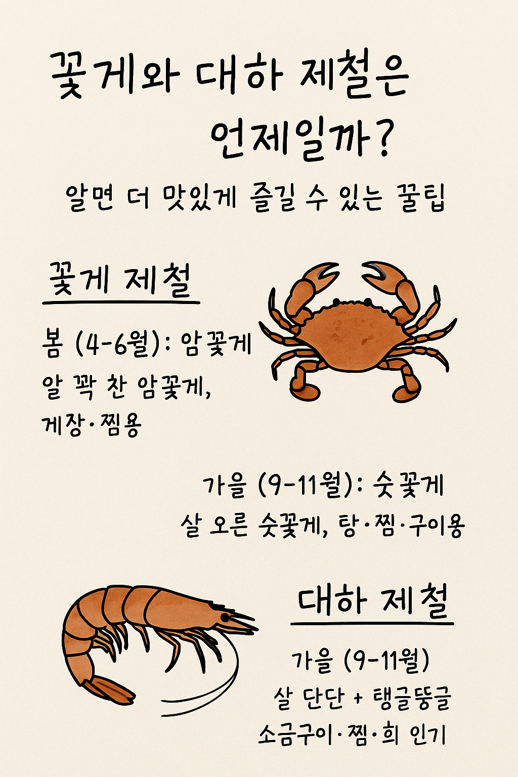 📌 꽃게와 대하 제철 한눈에 정리