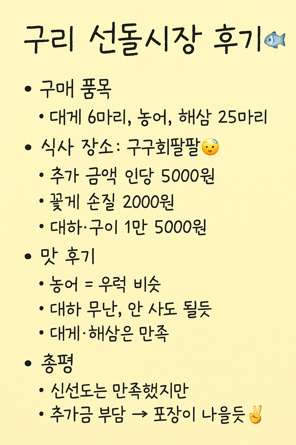 🐟 구리 선돌시장 후기 — 신선한 해산물과 아쉬운 상차림비 솔직 후기