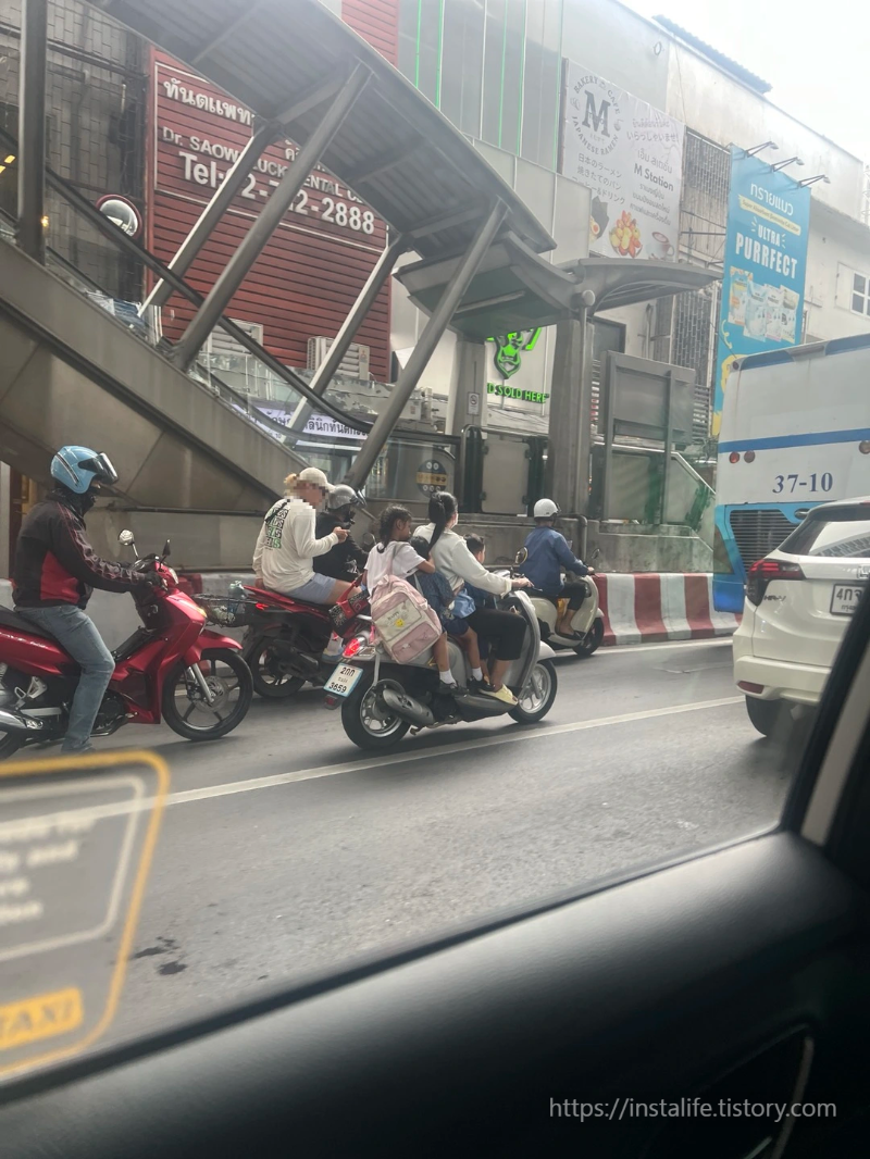 방콕 도로에서 오토바이 타고 다니는 사람들 모습