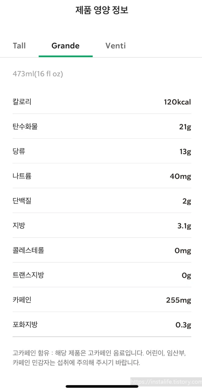 우선 저는 그란데 사이즈로 먹었습니다! 당도 13g이면 높지 않은 편이고, 나름 저당음료라고 할 수 있겠네요^^ (나만의 자기 합리화 중..)