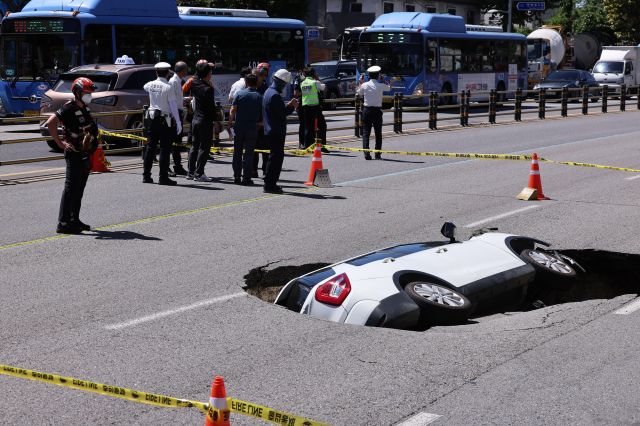 서울 서대문구 연희동 한 차도에서 싱크홀(땅 꺼짐)이 발생해 차가 통째로 빠지는 사고가 발생했다. 서울 서대문경찰서는 29일 오전 11시 26분쯤 서울 서대문구 연희동 성산대교로 향하는 성산로