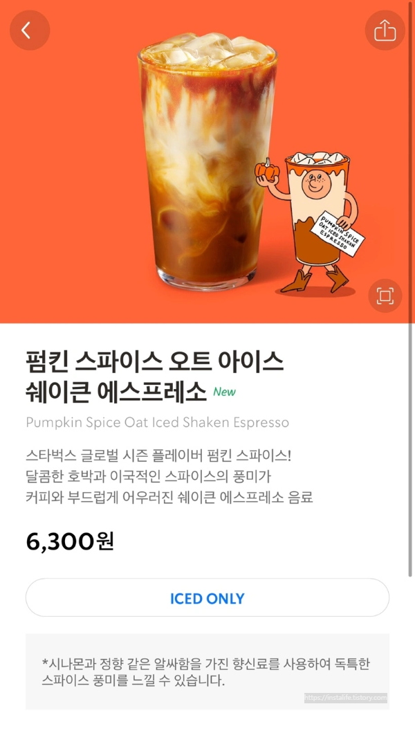 <<펌킨 스파이스 오트 아이스 쉐이큰 에스프레스>>소개