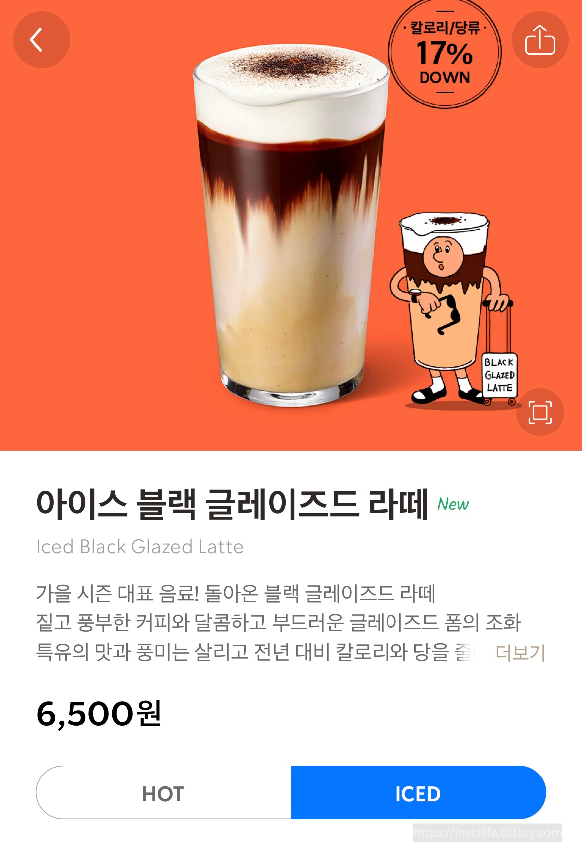 가을시즌 대표 음료! 스타벅스의 <<아이스 블랙 글레이즈드 라떼>>